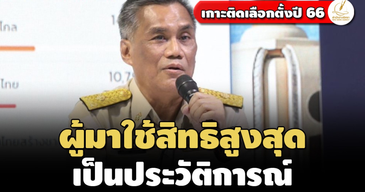 สำนักข่าวอิศรา (www.isranews.org) รายงานว่า เมื่อวันที่ 15 พ.ค. 2566 นายอิทธิพร บุญประคอง ประธานกรรมการการเลือกตั้ง (กกต.) แถลงสรุปภาพรวมการเลือกตั้งเมื่อวันที่ 14 พ.ค. 2566 อย่างไม่เป็นทางการ ล่าสุดการนับคะแนนเป็น 99% ว่า เมื่อวานนี้ มีผู้ใช้สิทธิ 39,293,867 คน จากผู้มีสิทธิฯ 52,238,594 คน คิดเป็น 75.22% ซึ่งเป็นการจัดเลือกตั้งครั้งที่ 7 และพบตัวเลขผู้ใช้สิทธิสูงสุดเป็นประวัติการณ์ โดยปี 2562 มีจำนวนผู้ใช้สิทธิเฉลี่ย 74.87% เป็นตัวเลขที่น่ายินดี สะท้อนให้เห็นความตั้งใจในการเข้ามามีส่วนร่วมทางการเมือง