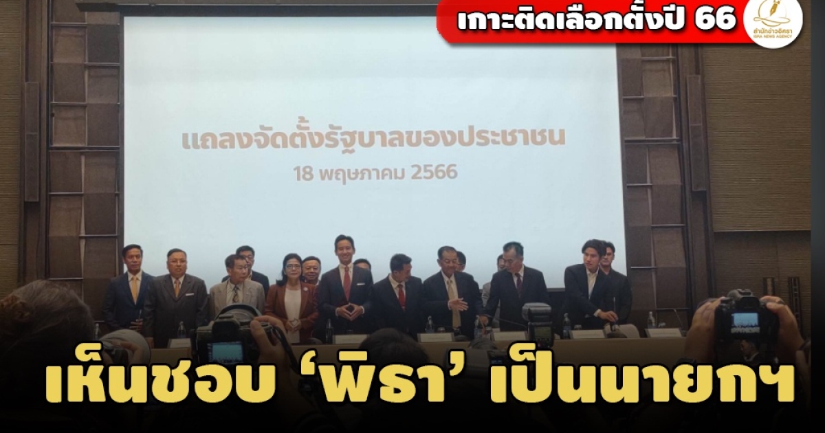 สำนักข่าวอิศรา (www.isranews.org) รายงานว่าเมื่อเวลา 10.00 น. ที่โรงแรมโอกุระ นายพิธา ลิ้มเจริญรัตน์ หัวหน้าพรรคก้าวไกลได้นำตัวแทนพรรคผู้ร่วมจัดตั้งรัฐบาลได้แก่ นายแพทย์ชลน่าน ศรีแก้ว หัวหน้าพรรคเพื่อไทย, คุณหญิงสุดารัตน์ เกยุราพันธุ์ หัวหน้าพรรคไทยสร้างไทย, นายวันมูหะมัดนอร์ มะทา หัวหน้าพรรคประชาชาติ, พล.ต.อ.เสรีพิศุทธ์ เตมียเวส หัวหน้าพรรคเสรีรวมไทย, นายปิติพงศ์ เต็มเจริญ หัวหน้าพรรคเป็นธรรม, นายเชาวฤทธิ์ ขจรพงศ์กีรติ หัวหน้าพรรคพลังสังคมใหม่ และนายวสวรรธน์ พวงพรศรี หัวหน้าพรรคเพื่อไทรวมพลัง ร่วมกันแถลงข่าวการจัดตั้งรัฐบาลประชาธิปไตยของประชาชน