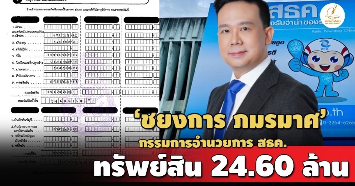 ป.ป.ช.เปิดบัญชีทรัพย์สิน 'ชยงการ ภมรมาศ'กรรมการอำนวยการสำนักงานธนานุเคราะห์ ทรัพย์สินกว่า 24 ล้าน สะสมเครื่องกระเบื้อง-ไวน์-คฑาไม้ Boxwood รายได้ 1.3 ล./ปี