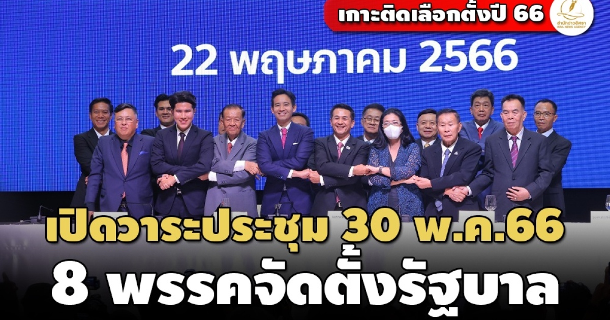 สำนักข่าวอิศรา (www.isranews.org) รายงานว่า วันที่ 29 พฤษภาคม 2566 พรรคที่จะร่วมจัดตั้งรัฐบาลจำนวน 8 พรรค ได้แก่ พรรคก้าวไกล พรรคเพื่อไทย พรรคประชาชาติ พรรคไทยสร้างไทย พรรคเสรีรวมไทย พรรคเพื่อไทรวมพลัง พรรคเป็นธรรม และพรรคพลังสังคมใหม่ กำหนดนัดประชุม เพื่อดำเนินการจัดตั้งรัฐบาลและทางานร่วมกันในวันพรุ่งนี้ (30 พ.ค. 66) เวลา 14.30 น. ณ ห้องประชุม สำนักงานพรรคประชาชาติ ถ.สรงประภา ซ.30 กรุงเทพมหานคร (กทม.) และจะแถลงข่าวในเวลา 16.30 น.