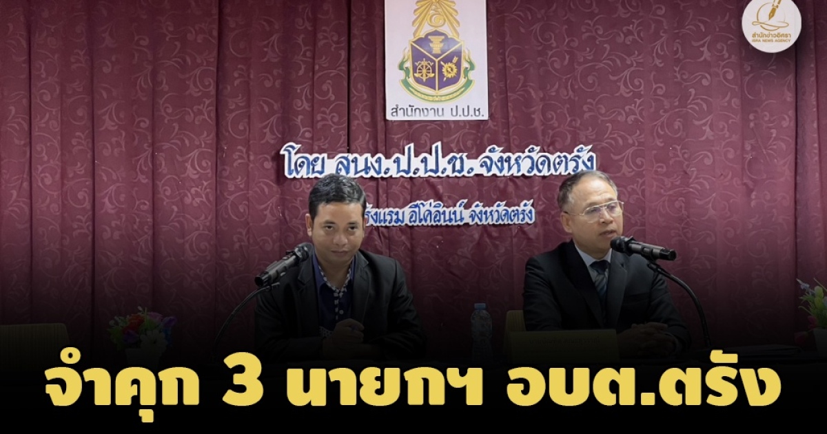 ป.ป.ช.ตรังแถลงผลคำพิพากษาศาลคดีทุจริตฯภาค 9 สั่งจำคุก 3 นายก อบต.-รองปลัด ใน จ.ตรัง ทำผิด ม. 157 เผยพฤติการณ์รายแรกใช้ตำแหน่งเอื้อเอกชนโครงการขุดคลองส่งน้ำ โดนโทษจำคุก 3 ปีไม่รอลงอาญาแม้รับสารภาพ รายที่ 2 อนุมัติเช็คงานกีฬาท้องถิ่นผิดระเบียบ โดนโทษจำคุก 15 ปี แต่ให้รอลงอาญา 3 ปี เหตุไม่เคยรับโทษมาก่อน รายที่ 3 จัดทำโครงการปรับปรุงคูระบายน้ำ ไม่ผ่านสภา อบต. อ้างเหตุฉุกเฉิน โดนโทษจำคุก 4 ปี แต่ให้รอลงอาญา 2 ปี เหตุป่วยช่วยเหลือตัวเองไม่ได้