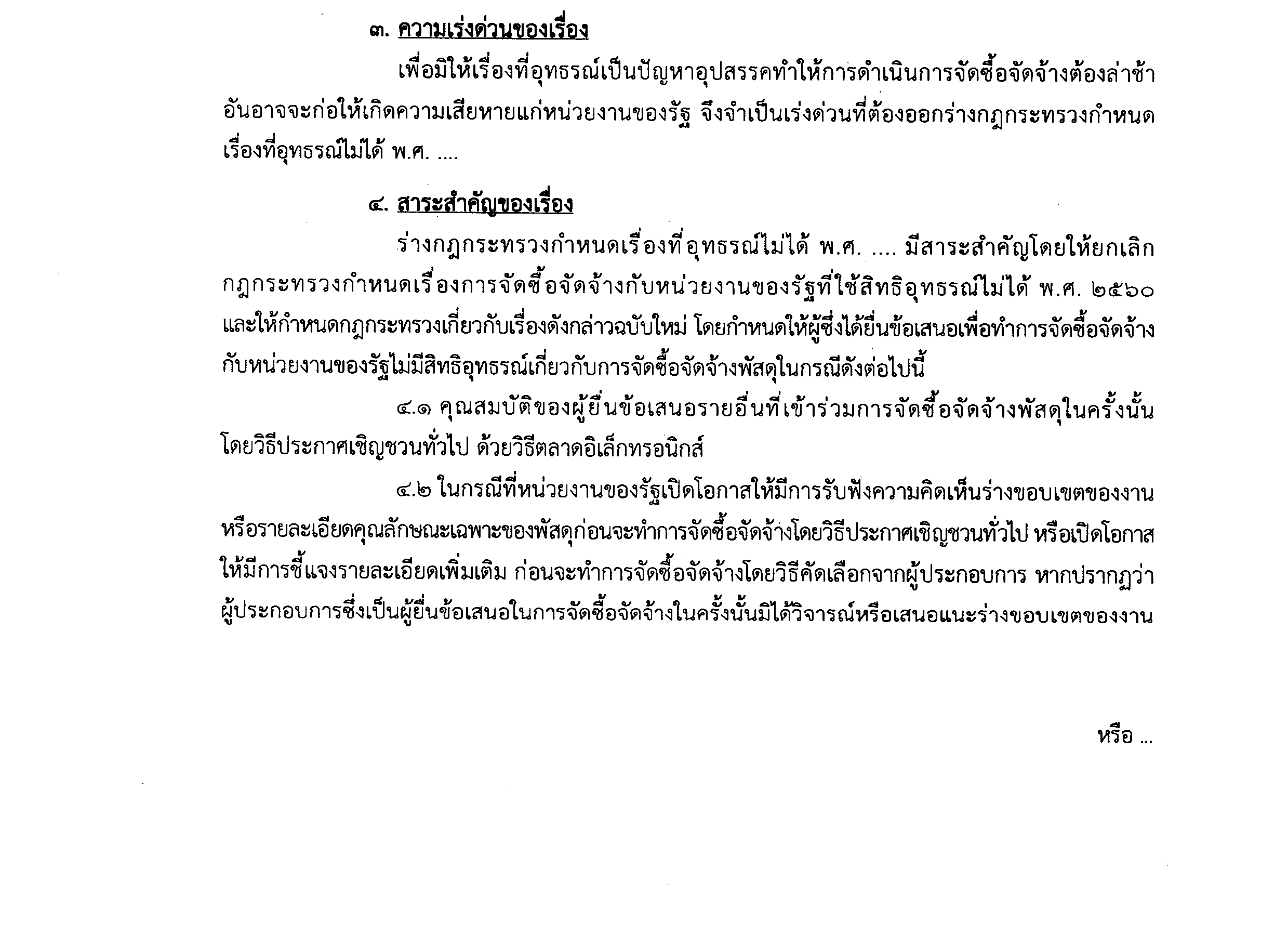 สำหรับร่างกฎกระทรวงฯดังกล่าว เป็นการยกเลิกกฎกระทรวงกำหนดเรื่องการจัดซื้อจัดจ้างกับหน่วยงานของรัฐที่ใช้สิทธิอุทธรณ์ไม่ได้ พ.ศ.2560 และกำหนดกฎกระทรวงเกี่ยวกับเรื่องดังกล่าวฉบับใหม่ เพื่อให้เกิดความชัดเจนในการปฏิบัติตามกฎหมายว่าด้วยการจัดซื้อจัดจ้างฯ โดยร่างกฎกระทรวงฉบับนี้กำหนดให้ผู้ซึ่งได้ยื่นข้อเสนอเพื่อจัดซื้อจัดจ้างกับหน่วยงานของรัฐ ไม่มีสิทธิอุทธรณ์เกี่ยวกับการจัดซื้อจัดจ้างพัสดุ ประกอบด้วย 4 กรณี ได้แก่