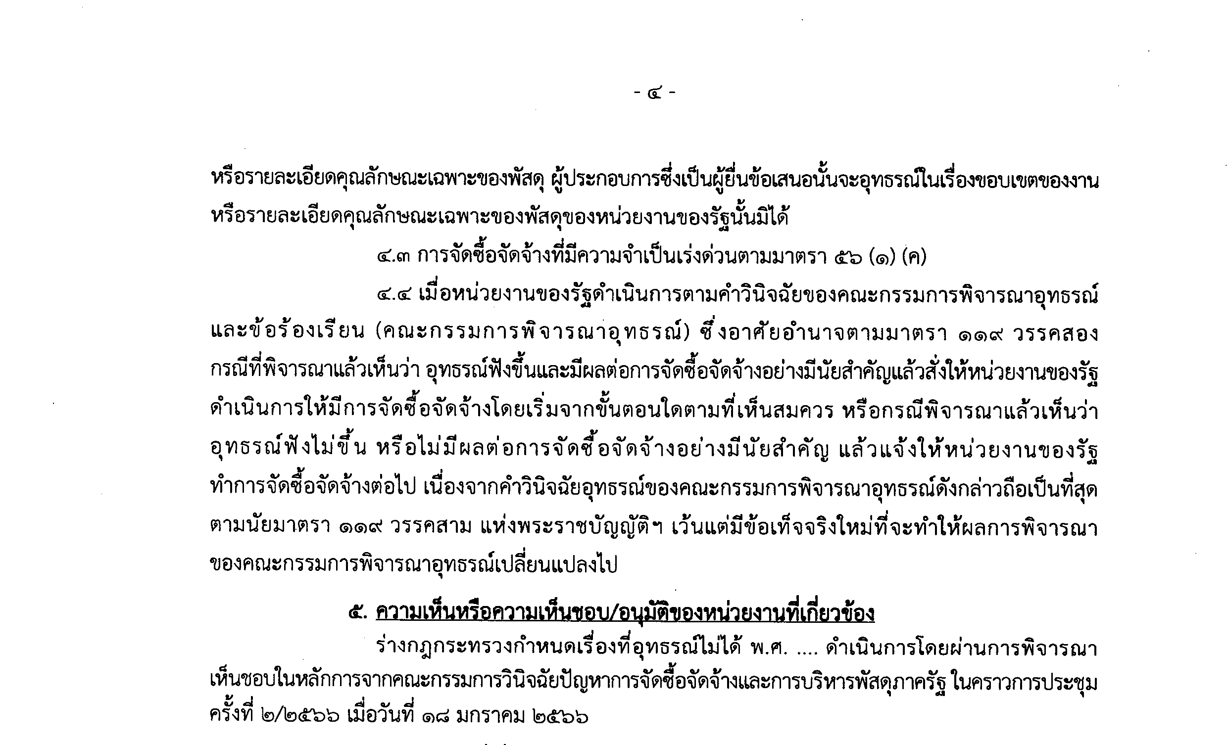 4.เมื่อหน่วยงานของรัฐดำเนินการตามคำวินิจฉัยของคณะกรรมการพิจารณาอุทธรณ์และข้อร้องเรียน (คณะกรรมการพิจารณาอุทธรณ์) ซึ่งอาศัยอำนาจตามมาตรา 119 วรรคสอง พ.ร.บ.การจัดซื้อจัดจ้างฯ กรณีพิจารณาแล้วเห็นว่า อุทธรณ์ฟังขึ้น และมีผลต่อการจัดซื้อจัดจ้างอย่างมีนัยสำคัญ แล้วสั่งให้หน่วยงานของรัฐดำเนินการจัดซื้อจัดจ้างโดยเริ่มจากขั้นตอนที่เห็นสมควร หรือกรณีพิจารณาแล้วเห็นว่าอุทธรณ์ฟังไม่ขึ้น หรือไม่มีผลต่อการจัดซื้อจัดจ้างอย่างมีนัยสำคัญ แล้วแจ้งให้หน่วยงานของรัฐดำเนินการจัดซื้อจัดจ้างต่อไป