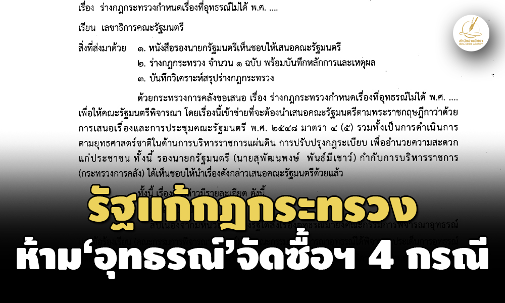 สำนักข่าวอิศรารายงานเพิ่มเติมว่า สาเหตุที่ทำให้กระทรวงการคลัง ต้องเสนอร่างกฎกระทรวงกำหนดเรื่องที่อุทธรณ์ไม่ได้ พ.ศ. .... เพื่อให้เกิดความชัดเจนเกี่ยวกับสิทธิการยื่นอุทธรณ์ในการจัดซื้อจัดจ้างของหน่วนงานของรัฐ ให้ ครม. พิจารณาให้ความเห็นชอบดังกล่าว เป็นผลสืบเนื่องจากมีหน่วยงานของรัฐได้ส่งเรื่องอุทธรณ์มายังคณะกรรมการพิจารณาอุทธรณ์และข้อร้องเรียน (คณะกรมการพิจารณาอุทธรณ์)