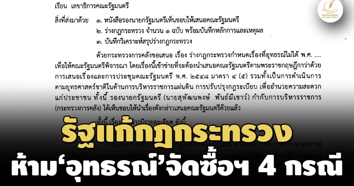 ครม.ไฟเขียวร่างกฎกระทรวงฯห้าม ‘ผู้ยื่นข้อเสนอ’ จัดซื้อจัดจ้างกับ ‘หน่วยงานรัฐ’ ยื่นอุทธรณ์ใน 4 กรณี ย้ำคำวินิจฉัยของ ‘คกก.พิจารณาอุทธรณ์’ ให้ถือว่า ‘เป็นที่สุด’ ขณะที่ ‘สำนักงานอัยการสูงสุด’ ค้านตัดสิทธิยื่นอุทธรณ์การจัดซื้อฯเร่งด่วน