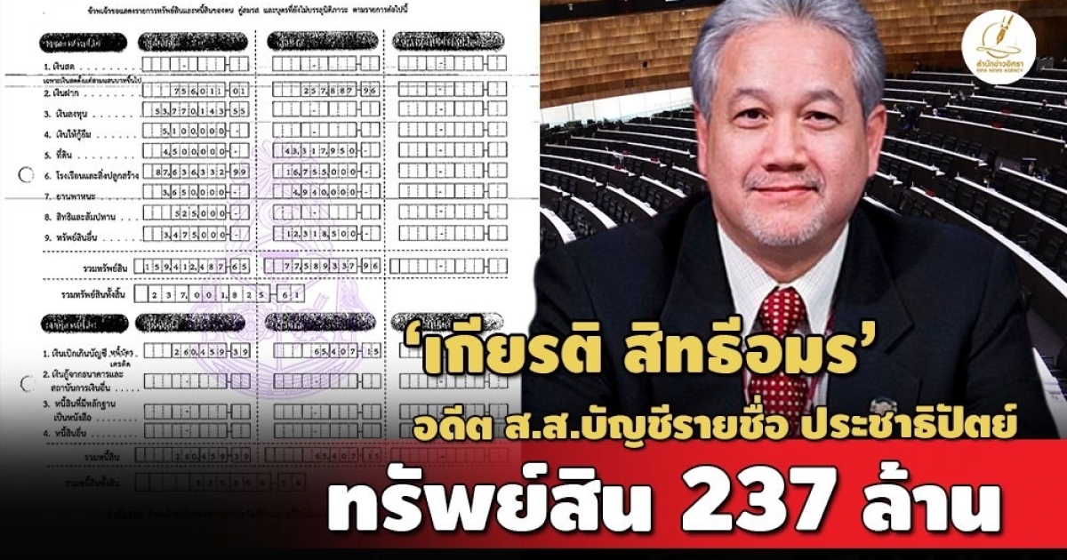 ป.ป.ช.เปิดบัญชีทรัพย์สิน 'เกียรติ สิทธีอมร' กรณีพ้นตำแหน่ง ส.ส.บัญชีรายชื่อ พรรคประชาธิปัตย์ ทรัพย์สินกว่า 237 ล. ให้ โปร เอ็น เทคโนโลยี จำกัด กู้ยืม 4.6 ล. สะสมเหรียญ ร.5 -นาฬิกา Rolex รายได้ 2.4 ล./ปี