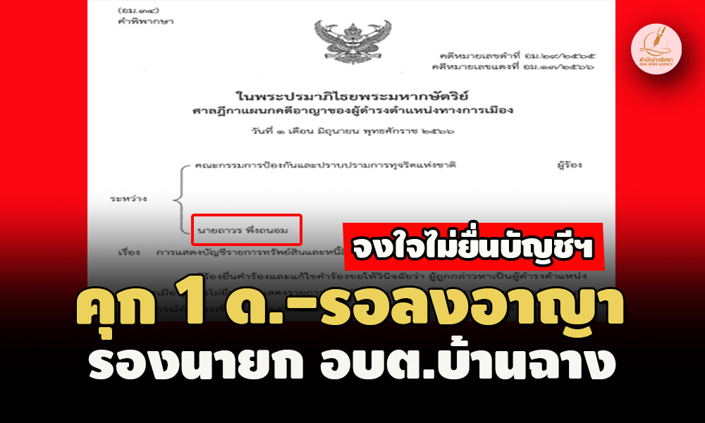 - ยื่นบัญชีฯเท็จ! ศาลฎีกาฯคุก1 เดือน นายก อบต.บางพรม จ.สมุทรสงคราม รอลงโทษ 1 ปี