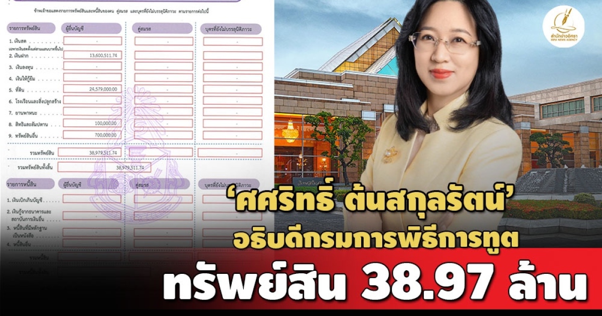ป.ป.ช.เปิดบัญชีทรัพย์สิน 'ศศิริทธิ์ ต้นกุลรัตน์' กรณีเข้ารับตำแหน่ง อธิบดีกรมพิธีการทูต ทรัพย์สินกว่า 38 ล. ทีมีดินในเขตพระโขนง-วัฒนา กทม. สะสมแหวนเพชร-สร้อยคอเพชร-สร้อยข้อมือทับทิมประดับเพชร รายได้1.1 ล./ปี