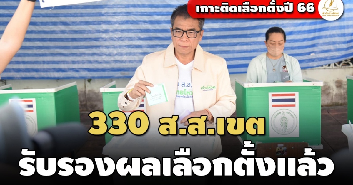 สำนักข่าวอิศรา (www.isranews.org) รายงานว่า วันที่ 13 มิถุนายน 2566 รายงานข่าวจากคณะกรรมการการเลือกตั้ง (กกต.) ระบุว่า ที่ประชุมคณะกรรมการ กกต. มีมติรับทราบรายงานผลการตรวจสอบเบื้องต้นผู้ได้รับเลือกตั้งเป็นส.ส.แบบแบ่งเขตเลือกตั้งที่ไม่มีเรื่องร้องเรียนและเชื่อได้ว่าผลการเลือกตั้งเป็นไปโดยสุจริตเที่ยงธรรม ที่กกต.สามารถประกาศรับรองผลการเลือกตั้งได้จำนวน 330 เขตเลือกตั้งตามที่สำนักงานกกต.เสนอ