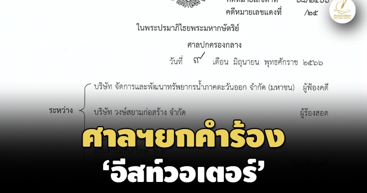 สำนักข่าวอิศรา (www.isranews.org) รายงานว่า เมื่อวันที่ 14 มิ.ย. ศาลปกครองกลางมีหนังสือแจ้งคำสั่งศาลในคดีหมายเลขดำที่ 68/2566 เกี่ยวกับวิธีการชั่วคราวก่อนการพิพากษา ลงวันที่ 9 มิ.ย.2566 ว่า ศาลฯมีคำสั่งยกคำขอทุเลาการบังคับตามคำสั่งทางปกครอง กรณี อีสท์วอเตอร์ ขอคุ้มครองชั่วคราวฯ เพื่อห้ามมิให้กรมธนารักษ์ส่งมอบทรัพย์สินโครงการหนองปลาไหล-หนองค้อ และโครงการหนองค้อ-แหลมฉบัง (ระยะที่ 2) ให้กับบริษัท วงษ์สยามก่อสร้าง จำกัด