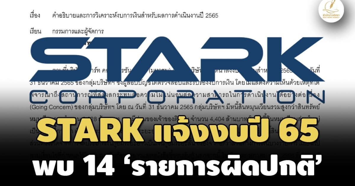 @‘ผู้สอบบัญชี’ไม่แสดงความเห็นต่องบการเงินปี 65 ของ STARK