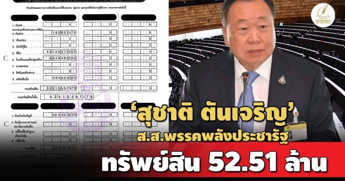 ป.ป.ช.เปิดบัญชีทรัพย์สิน 'สุชาติ ตันเจริญ' ส.ส.พรรคพลังประชารัฐ ทรัพย์สินกว่า 52 ล. ทีมีดินในฉะเชิงเทรา-กำแพงเพชร-กทม. สะสมอาวุธปืน รายได้ 1.3 ล./ปี -แจ้งสถานะ 'โสด'