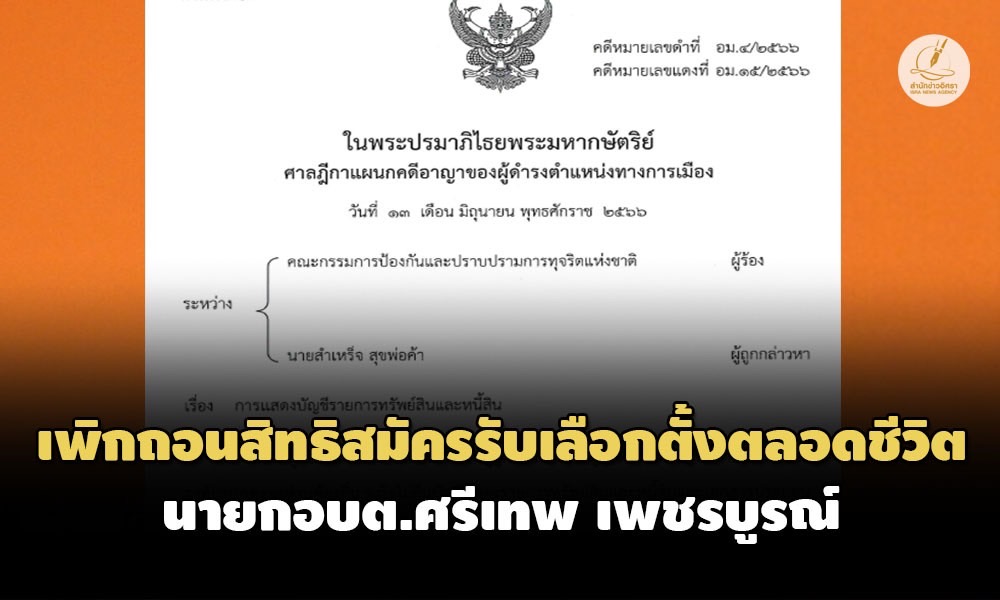 - ศาลฎีกาฯห้ามดำรงตำแหน่งการเมืองตลอดชีวิต นายก อบต.หนองปลิง ยื่นบัญชีฯเท็จ ป.ป.ช.