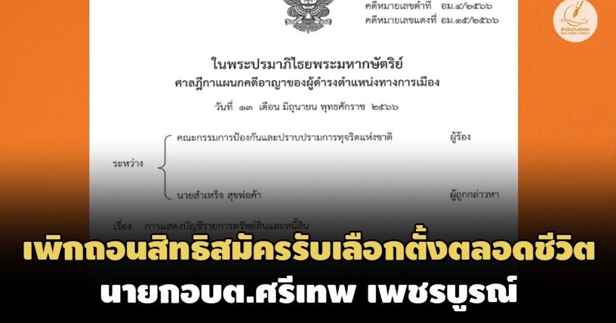 - ขาดอายุความอีกราย! ศาลฎีกาฯยกคำร้อง รองนายก อบต.สิงห์โคก จ.ร้อยเอ็ด ยื่นบัญชีฯเท็จ