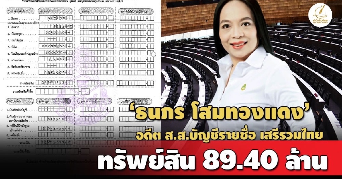 ป.ป.ช.เปิดบัญชีทรัพย์สิน 'ธนภร โสมทองแดง' อดีต ส.ส.บัญชีรายชื่อ พรรคเสรีรวมไทย ทรัพย์สินกว่า 89 ล. ทีมีดินและบ้านใน จ.อยุธยา สะสมกระเป๋าแบรนด์เนม Prada-Louis vuitton รายได้ 1.9 ล./ปี