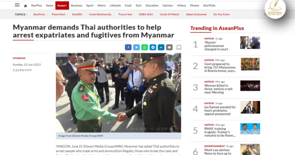 สำนักข่าวอิศรา (www.isranews.org) รายงานข่าวเกี่ยวกับสถานการณ์เมียนมาที่เชื่อมโยงถึงประเทศไทยว่ามีรายงานจากสื่อต่างประเทศว่าทางการเมียนมาได้ร้องขอให้ทางการไทยดำเนินการจับกุมผู้หลบหนีคดี และกลุ่มคนที่มีส่วนในการค้าอาวุธและกระสุนโดยผิดกฎหมาย ซึ่งคนกลุ่มนี้ได้หนีเข้ามาประเทศไทย