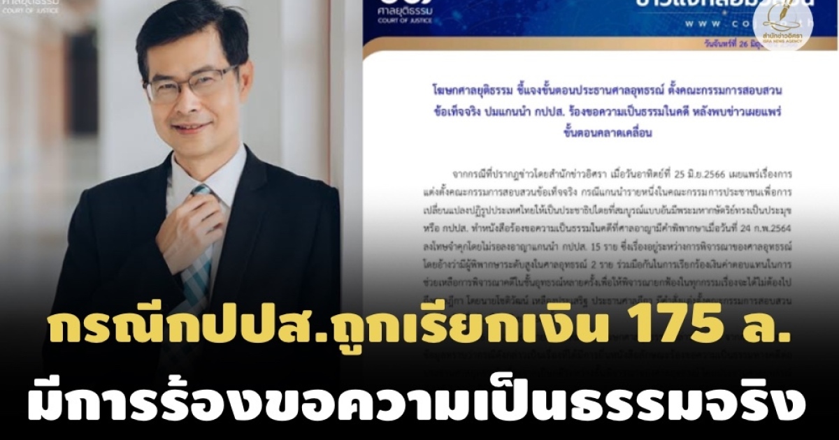 - แกนนำกปปส.ร้อง อ้าง‘2 ผู้พิพากษา’เรียก175 ล.ช่วยหลุดคดี-ปธ.ศาลฎีกาตั้งสอบข้อเท็จจริงแล้ว