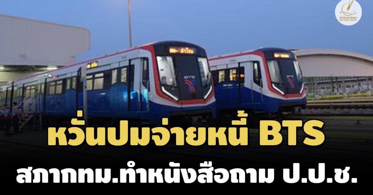 ‘ชัชชาติ’ ยังไม่ส่งญัตติควักเงินสะสม กทม.จ่ายหนี้ BTS วงเงิน 2.2 หมื่นล้านบ. สภากทม.รับกังวลปม ป.ป.ช.แจ้งข้อกล่าวหาปมจ้างเดินรถสายสีเขียว 13 ราย ประธานสภากทม.ส่งหนังสือถาม ป.ป.ช.แล้ว รอคำตอบกรณีจ่ายเงิน ทำได้หรือไม่