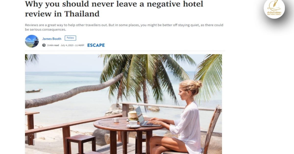 สื่อออสเตรเลียแฉ นักท่องเที่ยวรีวิวโรงแรมในไทยแง่ลบเสี่ยงเจอปัญหาเพียบ พบมีคนเคยถูกขู่ตำรวจจับ ต้องลบรีวิว ก่อนถูกไล่ออกจากโรงแรม ไม่ได้รับเงินคืน- พบมีกรณีนักท่องเที่ยวสหรัฐฯถูกโรงแรมไทยขู่ฟ้องเรียกเงินหลายล้านด้วย