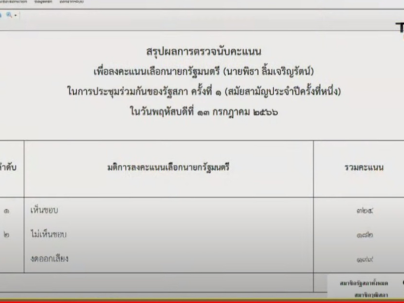 'พิธา' ไปไม่ถึงเก้าอี้นายกฯ วุฒิสภางดออกเสียงเพียบ 159 เสียง พบ 2 สภาโหวตให้เพียง 324 เสียง ไม่ถึงครึ่งหนึ่ง 376 เสียงตามบทเฉพาะกาลรัฐธรรมนูญ รอลุ้นโหวตอีกรอบ 19 ก.ค.นี้