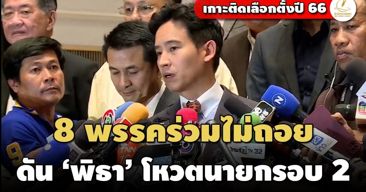 ที่ประชุม 8 พรรคร่วมจัดตั้งรัฐบาลดัน ‘พิธา’ เป็นนายกรัฐมนตรีรอบที่ 2 วันที่ 19 ก.ค. 66 นี้ เผยวาระแก้รัฐธรรมนูญมาตรา 272 เป็นวาระของก้าวไกลพรรคเดียว มั่นใจการดันต่อรอบ 2 ไม่ขัดข้อบังคับที่ 41 รับคุยพรรคร่วมรัฐบาลเดิม แต่ไม่คุยพรรคลุง แย้มช่องถอยให้ ‘เพื่อไทย’ เมื่อมีคะแนนขึ้น 10% แต่ไม่ถึง 376 เสียง
