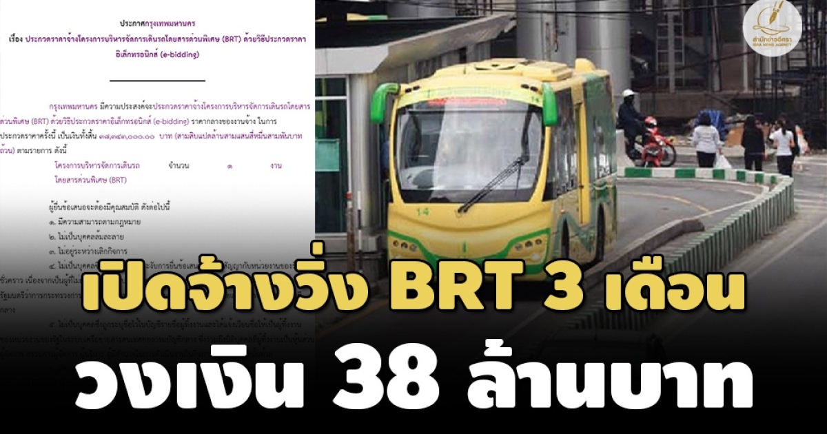 กทม.ออกประกวดราคาจ้างวิ่งรถเมล์ BRT ราคากลาง 38.34 ล้านบาท หลังจะหมดอายุสัมปทาน 31 ส.ค.นี้ กำหนดยื่นซอง 8 ส.ค. 66 หลังว่าจ้าง บ.กรุงเทพธนาคมวิ่งกว่า 10 ปี