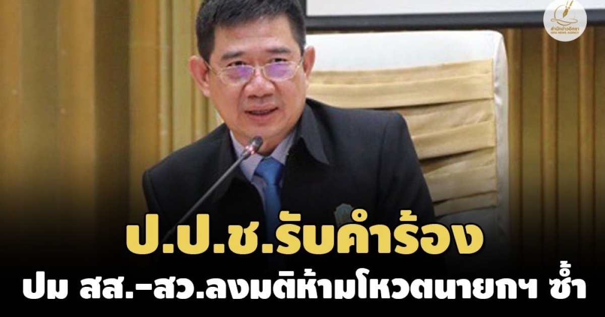 เลขา ป.ป.ช. เผยรับคำร้องเตรียมตรวจสอบกรณี 'เศวต ทินกูล อดีตสมาชิกสภาร่างรัฐธรรมนูญ' ยื่น ป.ป.ช. ตรวจสอบ สส.-สว.-ประธานสภา เห็นชอบห้ามโหวตนายกซ้ำ ชี้เป็นการฝ่าฝืนบทบัญญัติรัฐธรรมนูญ