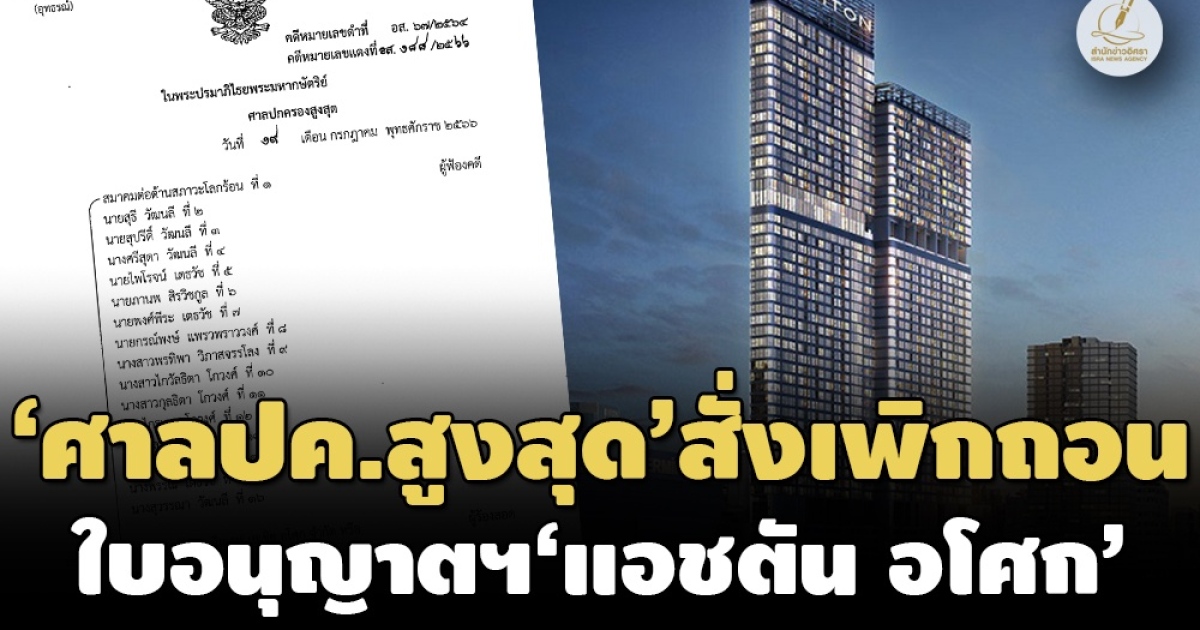 ‘ศาลปกครองสูงสุด’ พิพากษายืน สั่งเพิกถอนใบอนุญาตฯก่อสร้างโครงการคอนโดหรู ‘แอชตัน อโศก’ เหตุการออกใบอนุญาตฯเป็นการกระทำที่ไม่ชอบด้วยกฎหมาย
