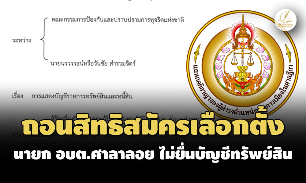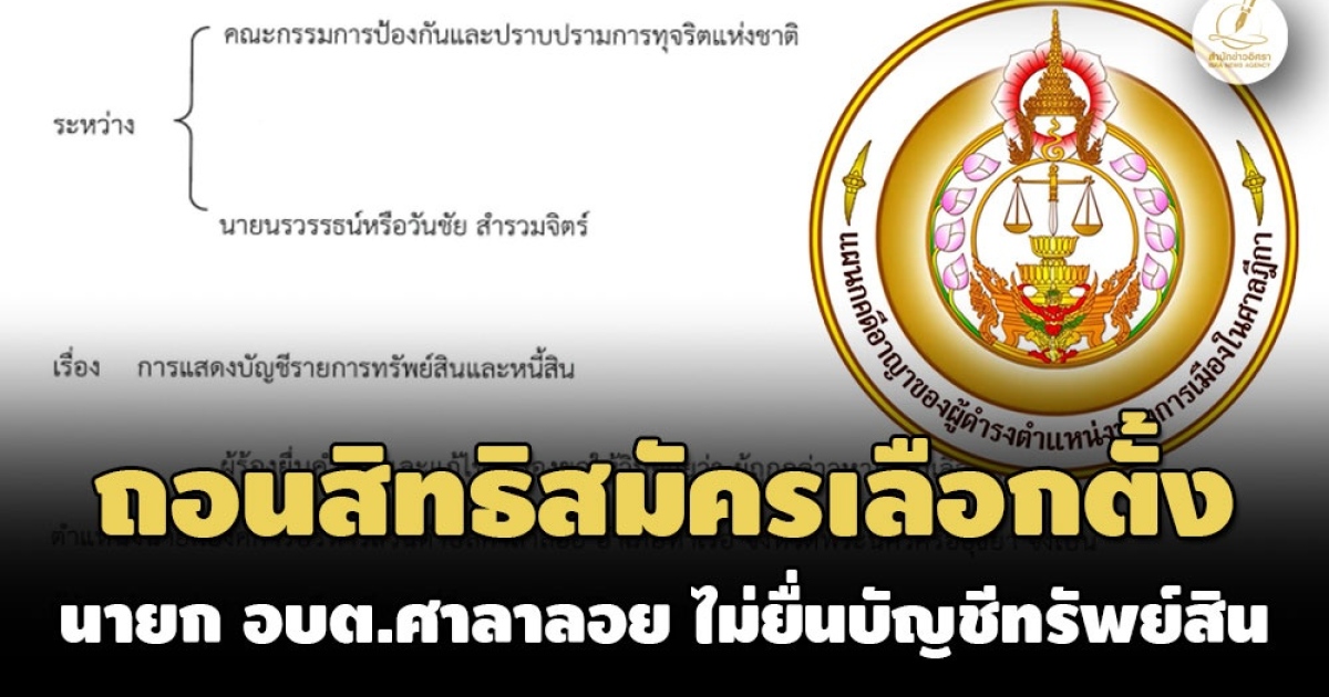 - ศาลฎีกาฯสั่งเพิกถอนสิทธิสมัครรับเลือกตั้งตลอดชีพ นายก ทต.ขวาว จงใจไม่ยื่นบัญชีฯ