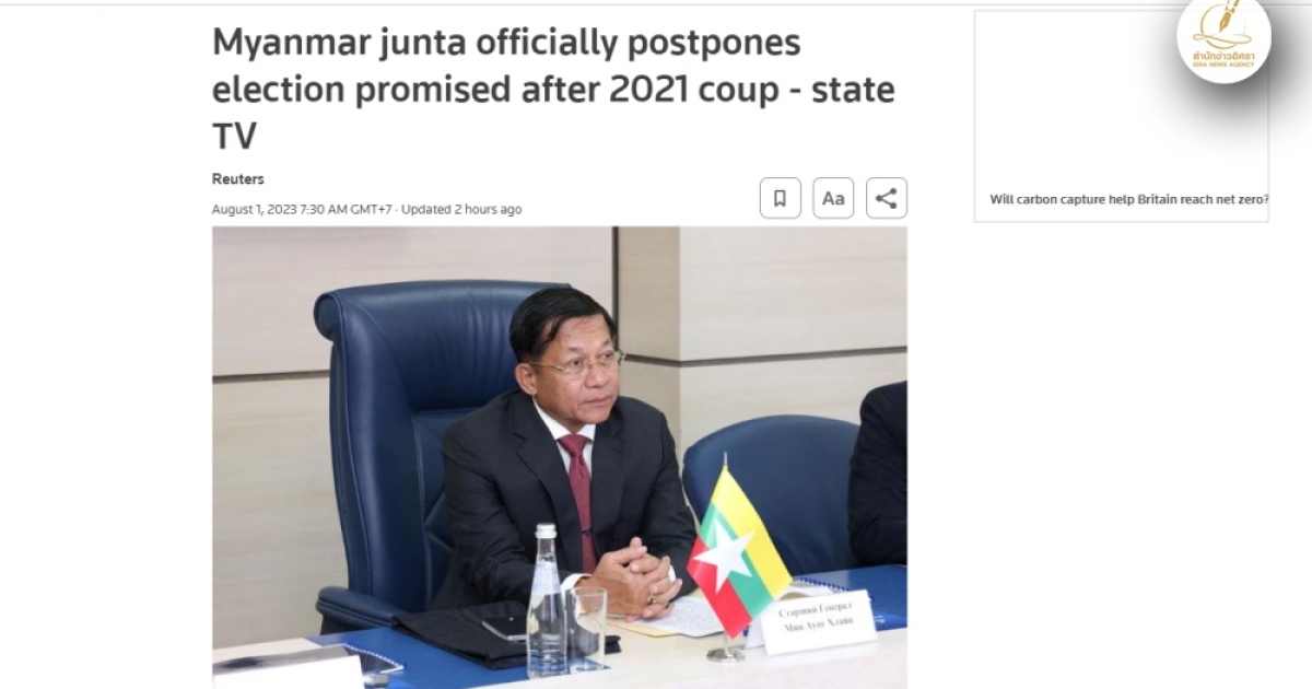 สำนักข่าวอิศรา (www.isranews.org) รายงานสถานการณ์เกี่ยวกับประเทศเมียนมาว่าเผด็จการทหารเมียนมาได้ประกาศเลื่อนการเลือกตั้งออกไป หลังจากที่ก่อนหน้านี้ให้คำสัญญาว่าจะมีการเลือกตั้งในเดือน ส.ค. ปีนี้ โดยคำประกาศดังกล่าวนั้นถูกประกาศผ่านช่องโทรทัศน์แห่งรัฐของเมียนมาเมื่อวันที่ 31 ก.ค.ที่ผ่านมา