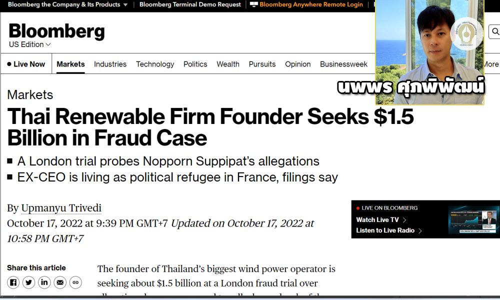 สืบเนื่องจากที่เป็นข่าวในสื่อต่างประเทศเมื่อเดือน ต.ค. 2565 กรณีที่ นายนพพร ศุภพิพัฒน์ อดีตประธานเจ้าหน้าที่บริหารของบริษัทวินด์ เอนเนอร์ยี่ โฮลดิ้ง (จำกัด) หรือ WEH และผู้ต้องหาคดี 112 เรียกเงินเป็นจำนวนกว่า 1.5 พันล้านดอลลาร์สหรัฐฯ (57,105 ล้านบาท) จากการยื่นฟ้องคดีฉ้อโกงที่กรุงลอนดอนด้วยข้อกล่าวหาที่ว่าเขานั้นถูกกดดันให้มีการขายหุ้นเป็นจำนวนมากของบริษัท ในช่วงเวลาที่เขาถูกฟ้องคดีอาญาในประเทศไทย โดยทนายของนายนพพรอ้างว่าเขาถูกชักชวนให้ขายหุ้นประมาณ 60 เปอร์เซ็นต์ของบริษัท และไม่เคยได้รับการจ่ายเงินด้วยมูลค่าหุ้นที่แท้จริง