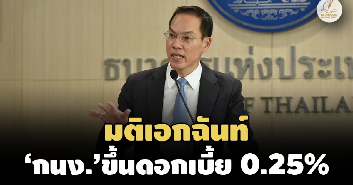 กนง.มีมติเอกฉันท์ขึ้นดบ.นโยบาย 0.25% สู่ระดับ 1.25%-จับตาเศรษฐกิจโลกเสี่ยงชะลอกว่าคาด
