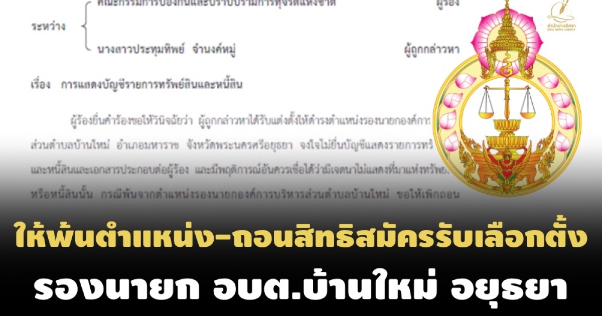 - ศาลฎีกาฯฟัน3 รายคดีบัญชีทรัพย์สิน! ให้รองนายกเทศฯ ในอยุธยา พ้นตำแหน่ง ซุกเพียบ