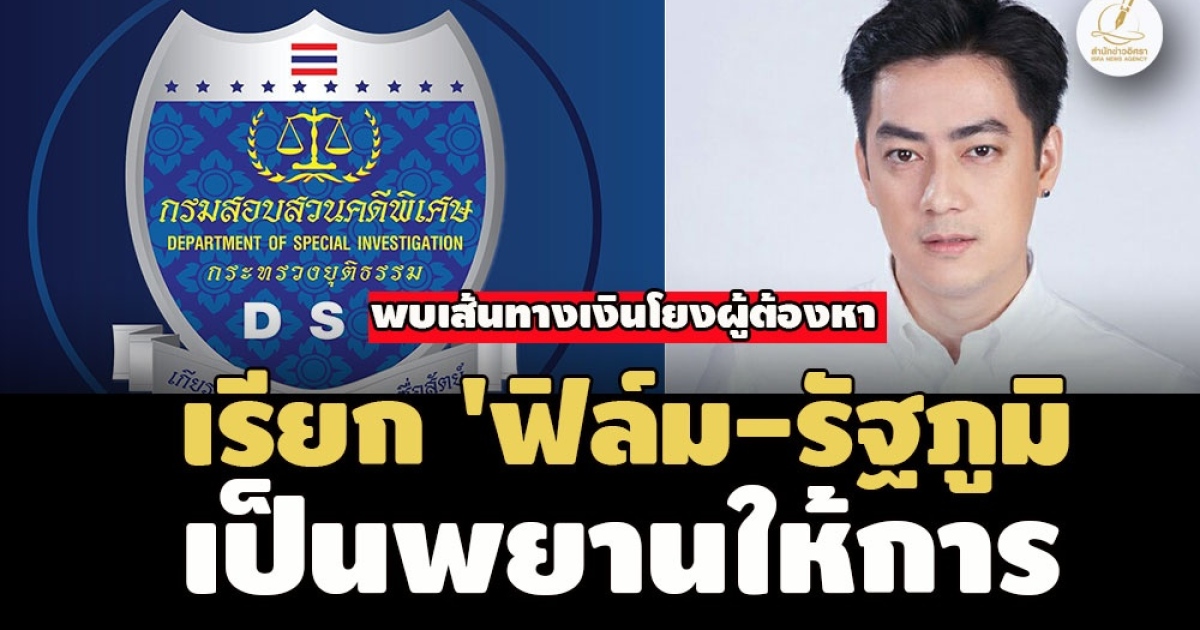 กรมสอบสวนคดีพิเศษ เผยแพร่ข้อมูลเรียก ''ฟิล์ม -รัฐภูมิ โตคงทรัพย์' เป็นพยานเข้าให้การคดีหลอกลงทุนบ.ออสซี่ออยล์ฯ-ชวนลงทุน Forex-3D หลังพบเส้นทางการเงินเชื่อมโยงผู้ต้องหาทั้ง 2 คดี ใช้ขยายผลถึงตัวการสำคัญต่อไป