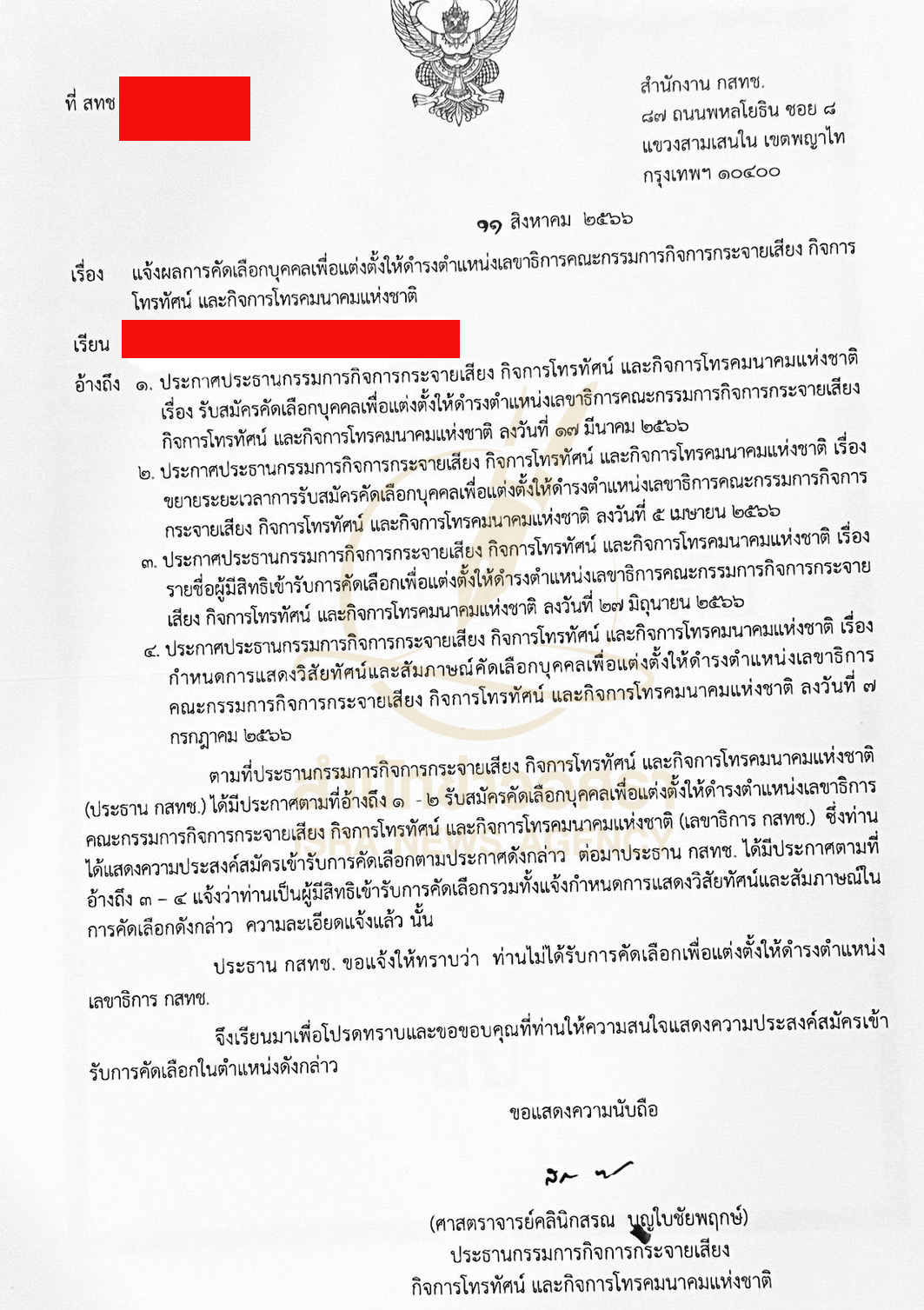 ฉบับ 2! เปิดบันทึก 3 กสทช.เตือน‘ปธ.’รับสมัคร‘เลขาธิการ’ไม่ชอบ-เอื้อใช้ดุลพินิจตามอำเภอใจ
