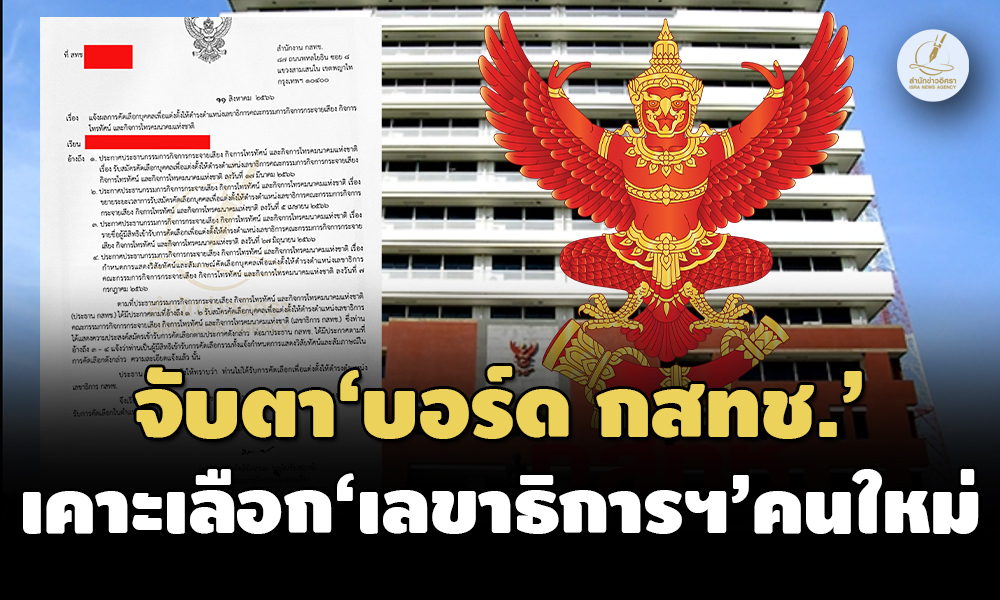 “ในการประชุมบอร์ด กสทช. วันที่ 23 ส.ค.นี้ มีการบรรจุวาระผลการคัดเลือกเลขาธิการ กสทช.คนใหม่ ให้ที่ประชุมพิจารณา อย่างไรก็ดี ในเอกสารวาระการประชุมไม่มีรายละเอียดเกี่ยวกับการดำเนินการในเรื่องดังกล่าว และไม่มีการระบุรายชื่อของผู้ที่จะถูกเสนอเป็นเลขาธิการ กสทช.เอาไว้ในเอกสาร” แหล่งข่าวจากสำนักงาน กสทช. เปิดเผยกับสำนักข่าวอิศรา