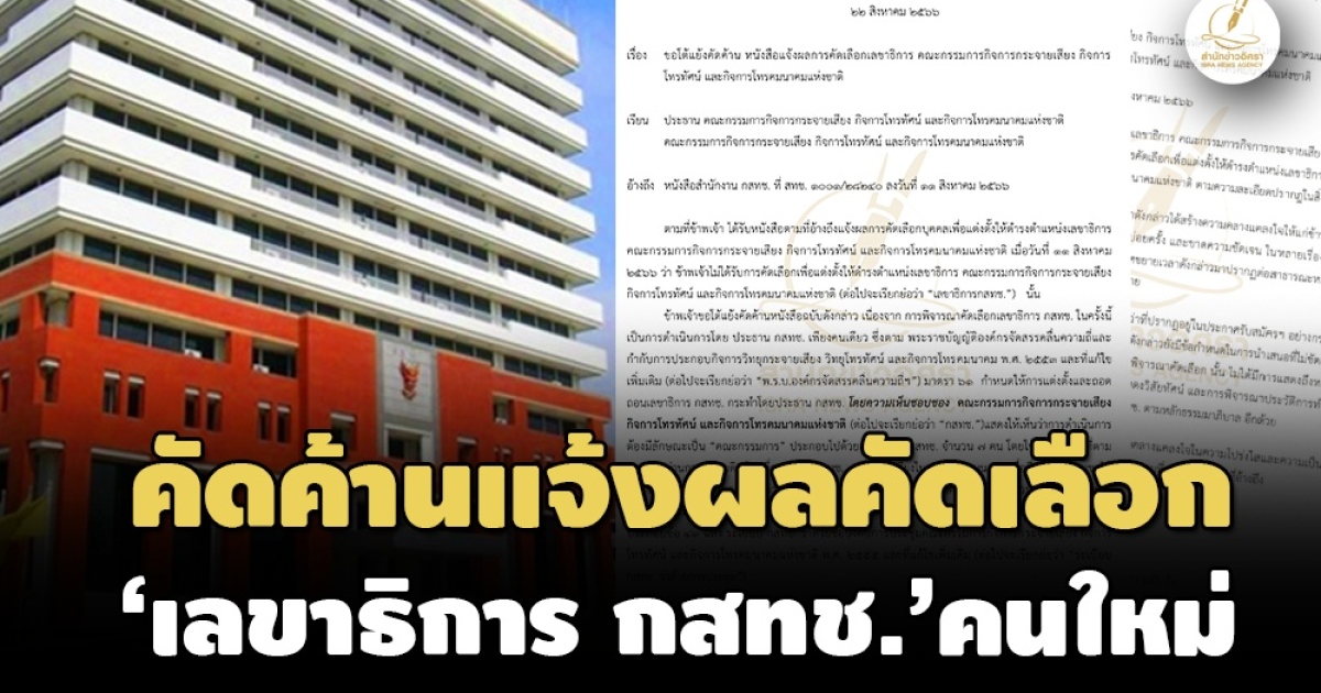 2 ผู้สมัครฯ ยื่นหนังสือถึง ‘ประธาน-กรรมการ กสทช.' คัดค้านหนังสือ 'นพ.สรณ' แจ้งผลการคัดเลือก ‘เลขาธิการ กสทช.’ คนใหม่ เหตุแคลงใจ ‘ความโปร่งใส’ ในการกระบวนการพิจารณา-ส่อขัดกฎหมาย