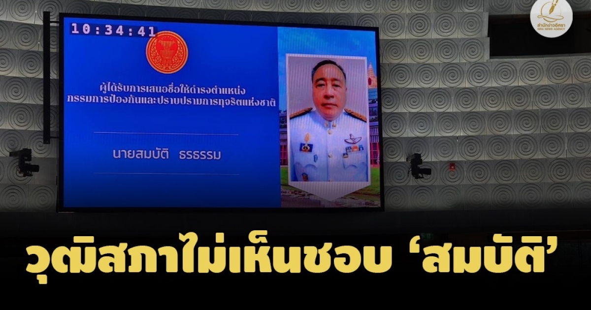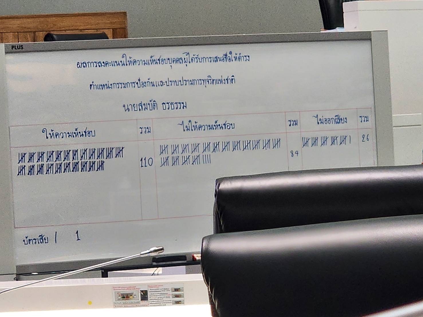 วุฒิสภาไม่เห็นชอบ 'สมบัติ ธรธรรม' เป็นกรรมการ ป.ป.ช. หลังได้คะแนนแค่ 110 เสียง ไม่ถึงกึ่งหนึ่ง 125 เสียง -เผยก่อนลงมติที่ประชุมถกข้อครหาประกวดให้เช่าโฆษณบนรถเมล์ ชี้ผลงานทนายความก็ยังไม่เป็นที่ประจักษ์