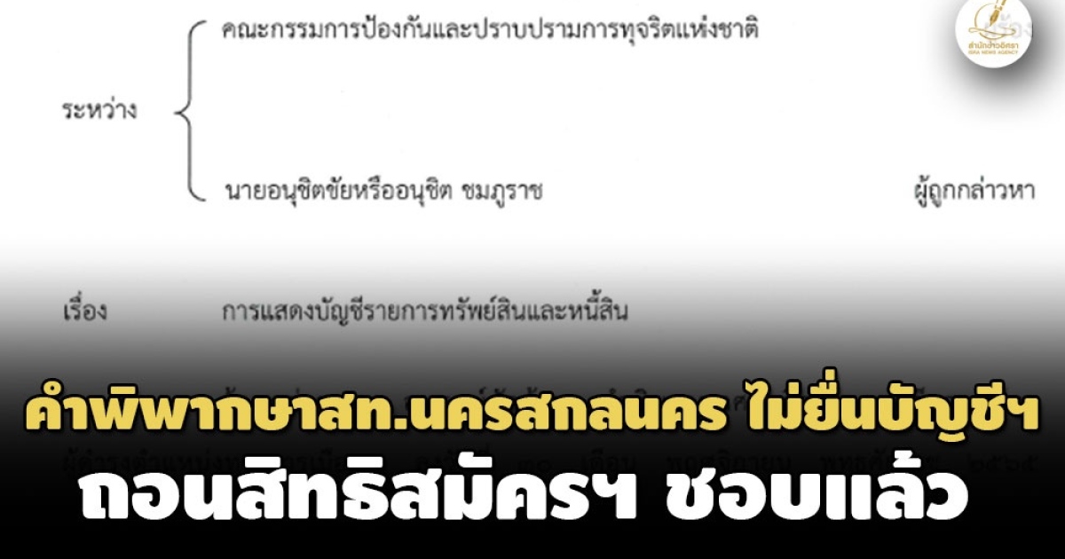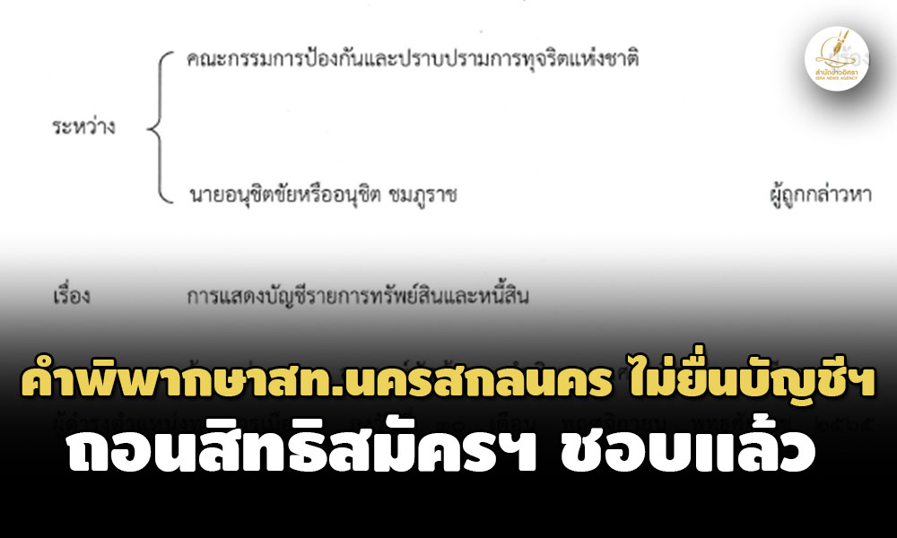 - ศาลฎีกาฯถอนสิทธิสมัครรับเลือกตั้งตลอดชีวิต สท.นครสกลนคร ไม่ยื่นบัญชีฯ11 รายการ