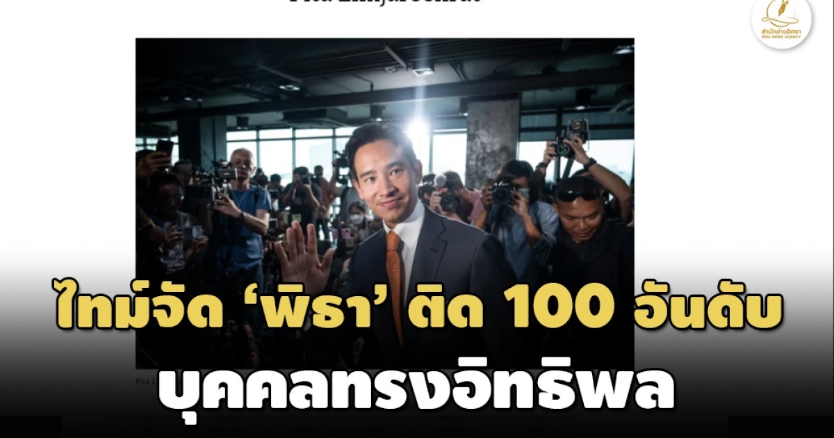 'ไทม์' จัด 'พิธา' ติด 100 อันดับ อยู่ในหมวดผู้นำ ชี้ หัวหน้าพรรคก้าวไกลได้คะแนนเสียง 38 เปอร์เซ็นต์ แต่ถูกขัดขวางโดย วุฒิสภา เจ้าตัวระบุรู้สึกเป็นเกียรติยิ่ง