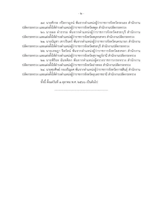 19. นายศักระ กปิลกาญจน์ พ้นจากตำแหน่งผู้ว่าราชการจังหวัดระนอง สำนักงานปลัดกระทรวง และแต่งตั้งให้ดำรงตำแหน่งผู้ว่าราชการจังหวัดสตูล สำนักงานปลัดกระทรวง