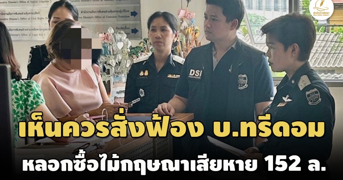 อธิบดี DSI เห็นควรสั่งฟ้อง บ.ทรีดอม ความผิดฐานฉ้อโกงประชาชน เผยพฤติการณ์ชักชวนหลอกประชาชนลงทุนซื้อต้นไม้กฤษณาขั้นต่ำ 1 แสน ต้องซื้ออย่างน้อย 10-20 ต้น มูลค่าความเสียหาย 152.2 ล้าน