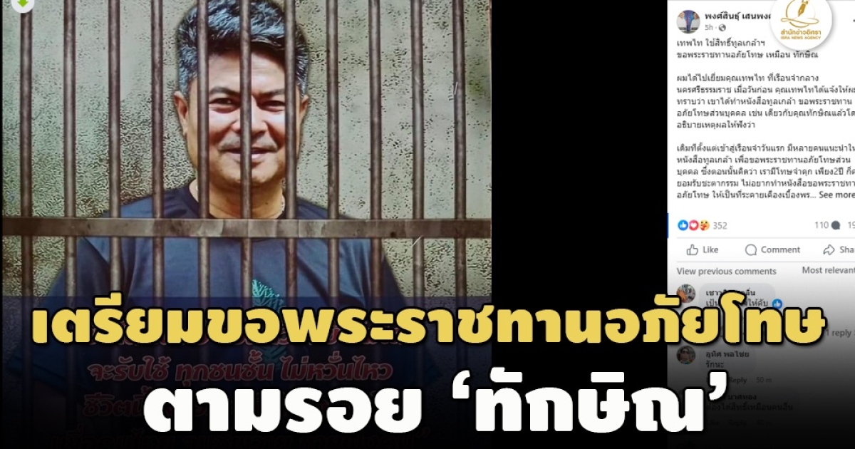 น้องชาย 'เทพไท เสนพงศ์' โพสต์เฟซ เผย 'เทพไท' เตรียมทำหนังสือทูลเกล้าขอพระราชทานอภัยโทษเหมือน 'ทักษิณ' เจ้าตัวมั่นใจคุณสมบัติ เคยทำงานรับใช้ประชาชน-เป็นผู้สูงวัย ป่วยหลายโรคไม่แตกต่างกัน