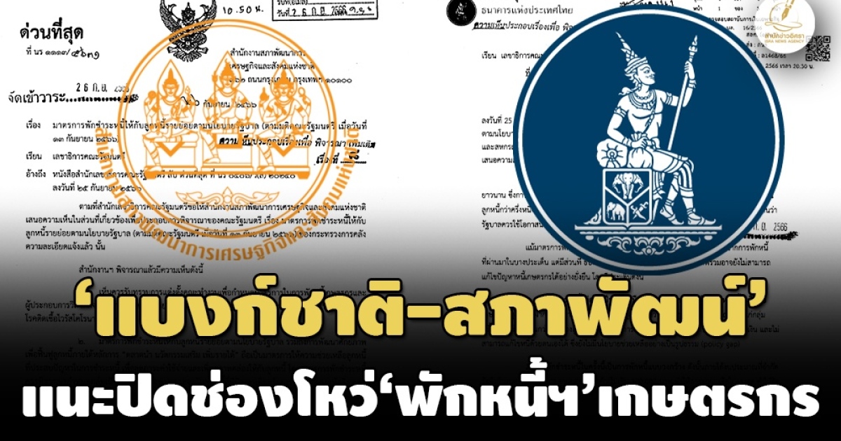 เปิดหนังสือ 3 หน่วยงาน แนะแก้จุดอ่อนมาตรการพักหนี้ฯเกษตรกร ‘ธปท.’ หนุนรัฐให้ความสำคัญแก้ปัญหา ‘หนี้เรื้อรัง’ มีกลไกจูงใจให้ลูกหนี้ที่มีศักยภาพยังชำระหนี้ต่อเนื่อง ขณะที่ ‘สศช.’ ชี้ควรใช้มาตรการระยะ ‘สั้นๆ’ เพื่อป้องกันปัญหาการสะสมของหนี้สินเกษตรกร