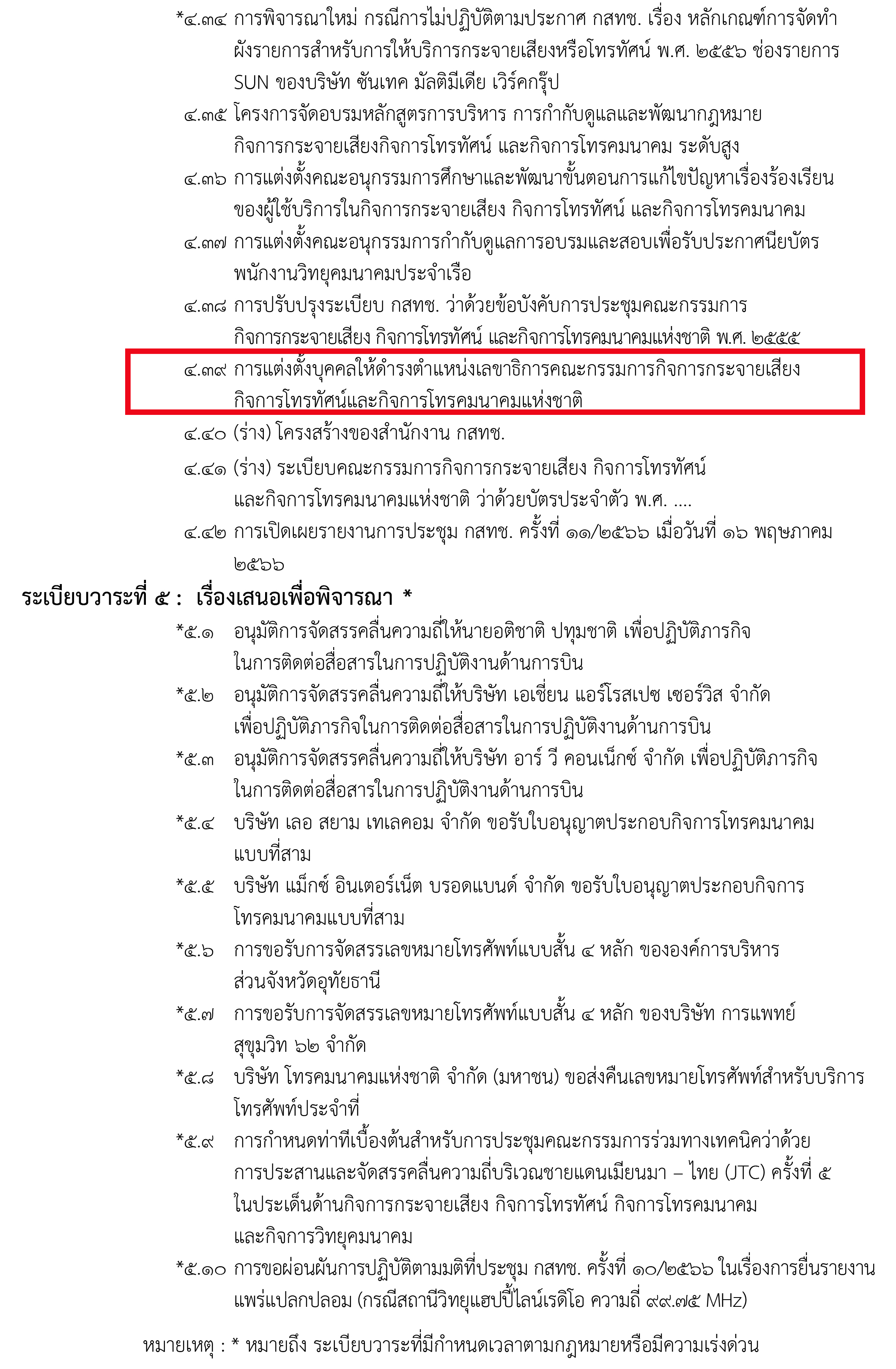 (ที่มา : วาระการประชุม กสทช. วันที่ 4 ต.ค.2566 ,สำนักงาน กสทช.)