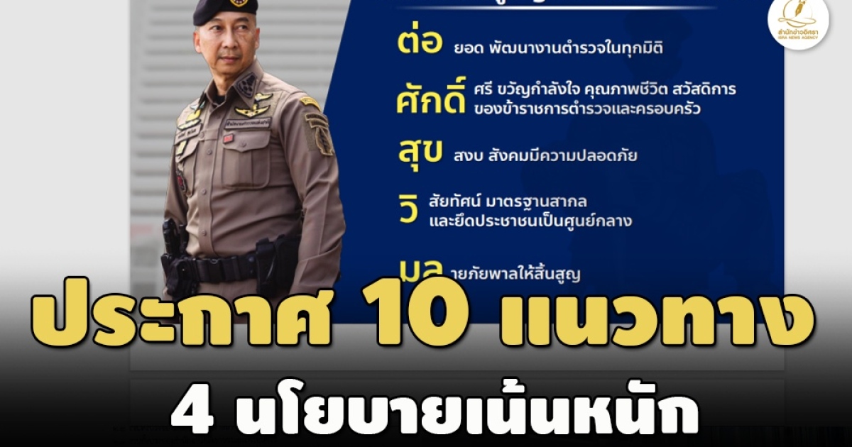 สตช.เผยแพร่เอกสารวิสัยทัศน์บิ๊กต่อ 10 แนวทางบริหาร 4 นโยบายเน้นหนัก ข้อแรกเน้นปกป้องสถาบัน ต้องให้สมพระเกียรติ ประชาชนเดือดร้อนน้อยสุด ส่วนด้านธรรมาภิบาลตั้งเป้า ITA สตช.-สน.ทั่วประเทศต้องได้คะแนนดีถึงดีเยี่ยม