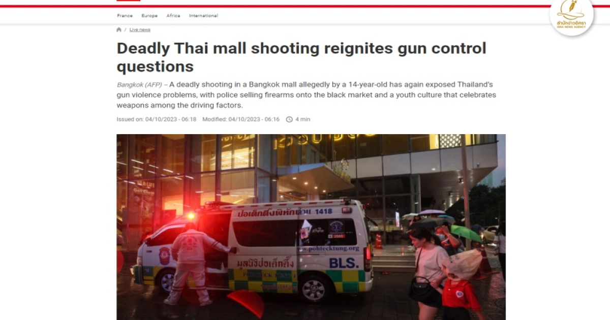 เรียบเรียงจาก:https://www.rfi.fr/en/international-news/20231004-deadly-thai-mall-shooting-reignites-gun-control-questions
