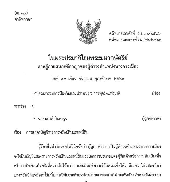 - คำพิพากษาฉบับเต็ม! ไขคดี รองนายก อบต.กันจุ ปกปิดทรัพย์สินคู่สมรส ป.ป.ช.