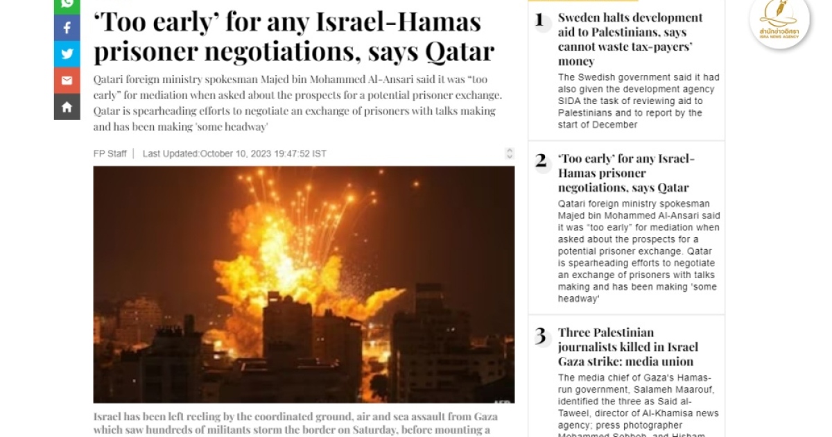 เรียบเรียงจาก:https://www.firstpost.com/world/too-early-for-any-israel-hamas-prisoner-negotiations-says-qatar-13230772.html