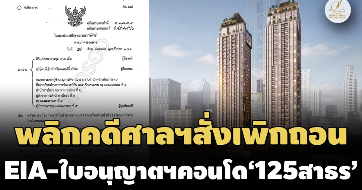 พลิกคำพิพากษาคดี ‘ศาลปกครองกลาง’ สั่งเพิกถอน EIA-ใบอนุญาตฯคอนโด ‘125 สาทร’ มูลค่า 8 พันล้าน เหตุ ‘คณะกรรมการชำนาญการฯ’ ใช้ข้อมูลประกอบการพิจารณา โดยไม่ตรวจสอบ 'ข้อเท็จจริง' ให้ถูกต้องตามกฎหมายก่อน ส่งผลให้การคำนวณ ‘อัตราส่วนพื้นที่อาคารรวมต่อพื้นที่ดินของที่ดิน’ อาจเกินกว่าที่กฎหมายกำหนด